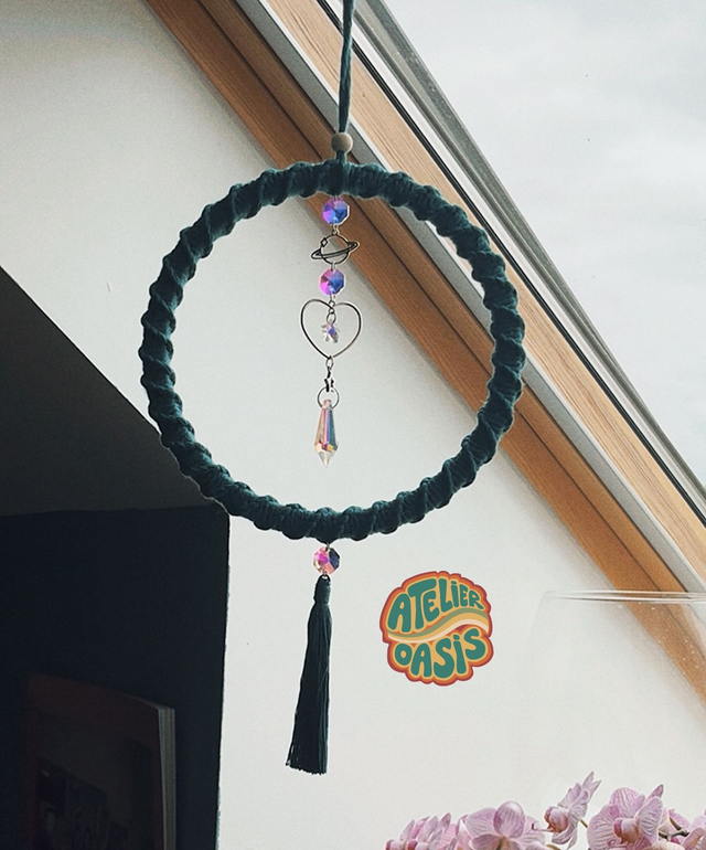 Psst .. Lover a un secret bien caché : sa perle en bois fait office de diffuseur d'huile essentielle.. Je t'explique : Dépose quelques gouttes d’huile essentielle sur la perle en bois, accroche ton macramé dans une pièce ensoleillée pour qu’il capte la lumière du jour et la disperse en une myriade de couleurs, et profite de l’odeur que diffuse ton macramé