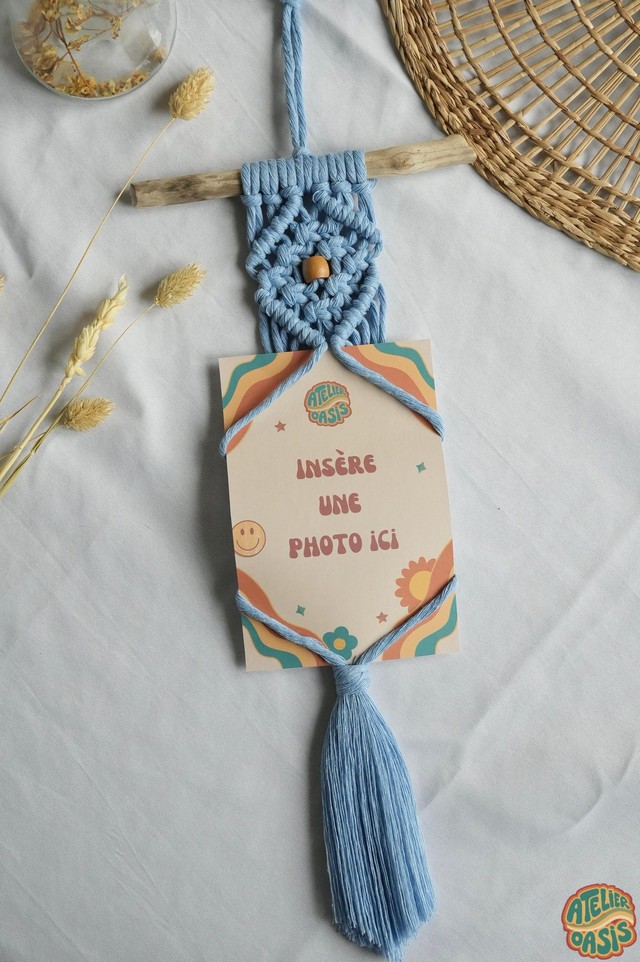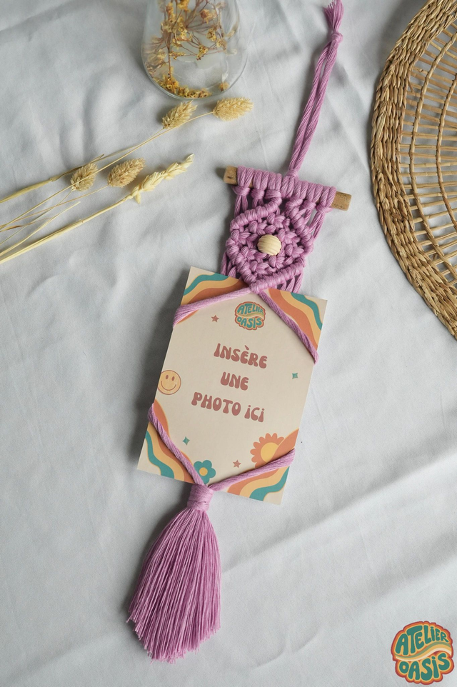Mets tes jolis photos en valeur avec ce support mural en macramé et sublime ton joli chez toi avec une petite touche bohème et colorée.