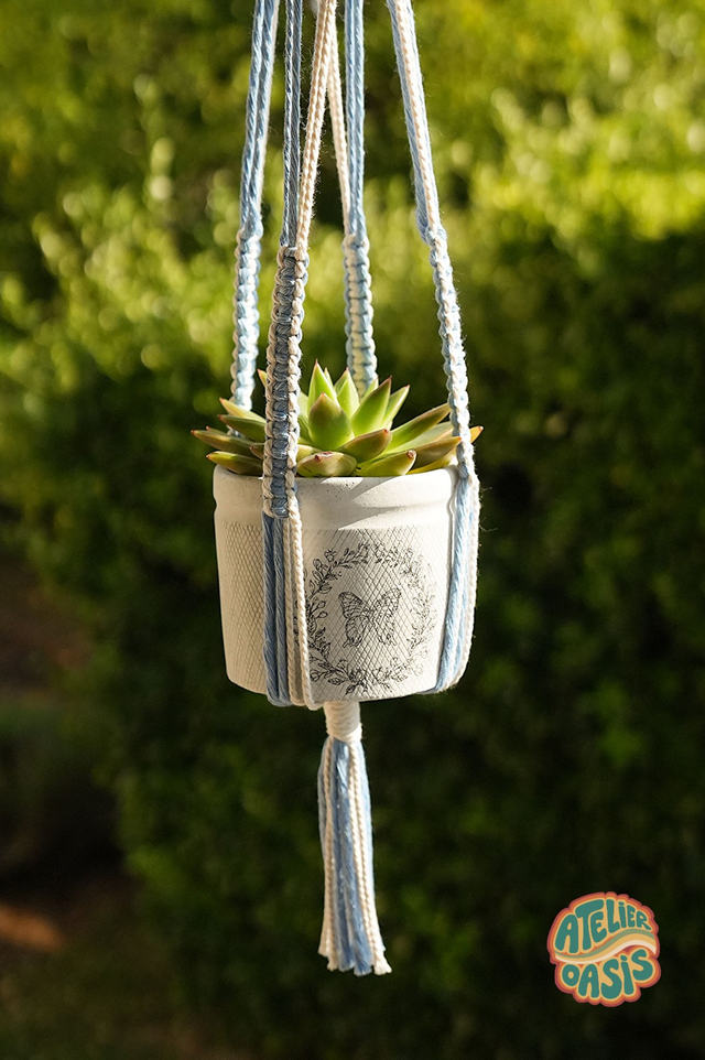 Mets tes jolies plantes d’intérieur en valeur avec le porte-plante Atelier Oasis et sublime ton joli chez toi avec une petite touche bohème. Cette création aux nuances naturelles inspire le calme et la nature, tout en alliant le coté pratique d'un rangement suspendu esthétique.