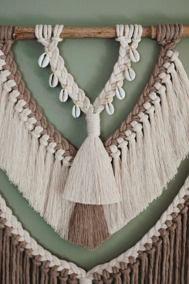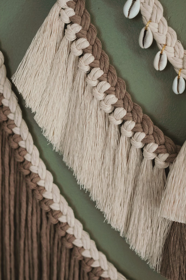 Mets ton macramé en évidence dans ton joli chez-toi en le suspendant à un mur vide, à hauteur de vue pour un rendu splendide. C'est l'élément idéal pour apporter une touche artisanale et d'authenticité à ta déco.