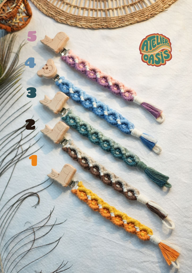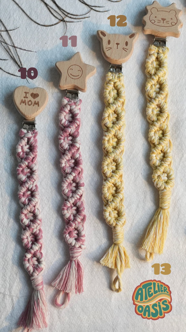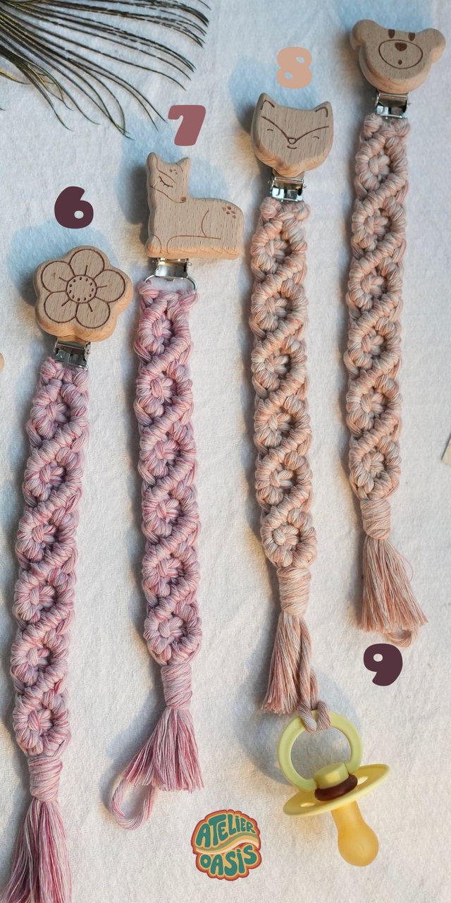 Découvre les nouveaux attaches-tétines en macramé disponibles en une multitude de couleurs et d’accroches tellement mignonnes 🌈