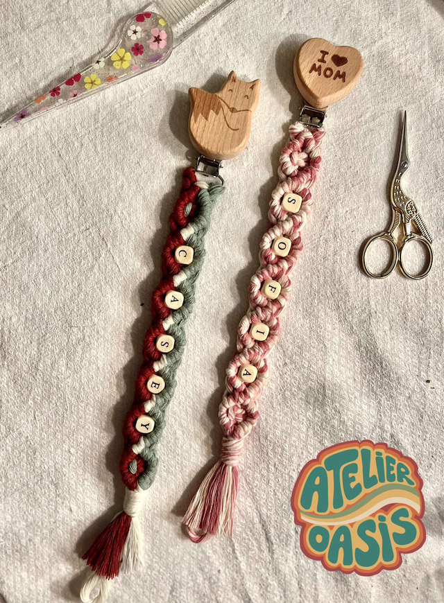 Découvre les nouveaux attaches-tétines en macramé disponibles en une multitude de couleurs et d’accroches tellement mignonnes 🌈
